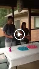 We asked our families to wear a pink or a blue shirt to show their gender guess. I was shocked at how many people ended up wearing blue! We had leis there for people, too, in case they didn't have something blue or pink in their wardrobe. My mom's boyfriend was also kind enough to bring us some balloons, which added the perfect touch.